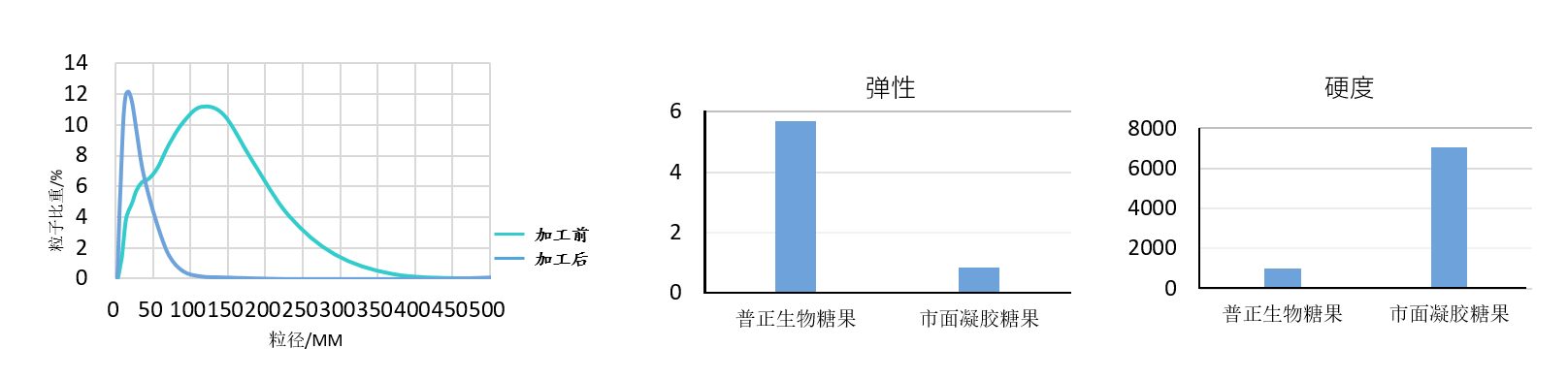 (一)對(duì)內(nèi)容物進(jìn)行精細(xì)化加工,使內(nèi)容物粒徑從數(shù)百微米到數(shù)十微米,凝膠糖果咀嚼起來(lái)口感更細(xì)膩軟糯。