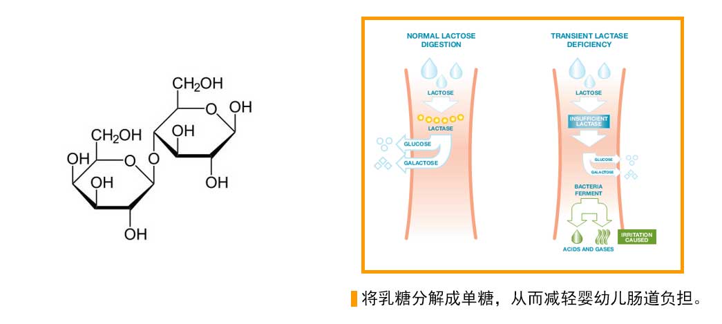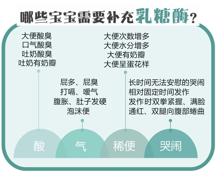 當(dāng)嬰幼兒體內(nèi)還沒有準備好生成足夠多的乳糖酶來分解吸收牛奶、乳制品、嬰幼兒配方奶,甚至是母乳中的乳糖時,會產(chǎn)生 “乳糖不耐”相應(yīng)的不適,常見的有腸絞痛、腹瀉等現(xiàn)象。