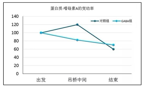 試驗(yàn)結(jié)果表明,過橋前攝取了GABA的實(shí)驗(yàn)者唾液中嗜鉻素的分泌量明顯比對照組要少。GABA通過抑制蛋白質(zhì)-嗜鉻素A上升從而達(dá)到緩解壓力的效果。